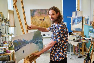 MEGEN - Een meer inspirerende omgeving dan Megen kan schilder Richard van Mensvoort zich moeilijk voorstellen. Zelfs wanneer hij zich ergert aan afval op de Maasdijk, neemt hij dat mee naar zijn atelier. ,,Die Red Bullblikjes zijn aantrekkelijk om te schilderen.”