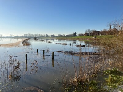 MEGEN -De Rulstraat is afgesloten voor alle verkeer, en de pont ligt extra vast. In Megen staat het water hoog op de velden en in de Maas, 6,24 boven NAP. Maar het is alweer aan het zakken. In Maasbommel is de pont uit de vaart genomen vanwege het hoge water.