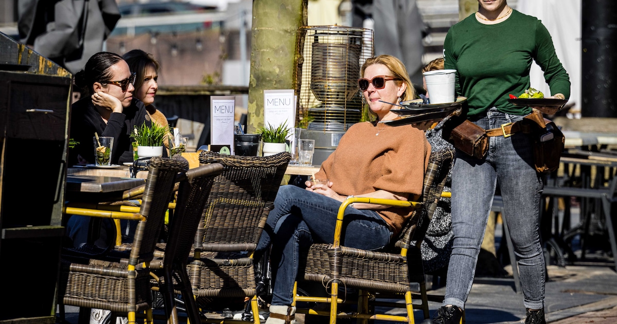 Een terras in Rotterdam afgelopen maart. Nu de lonen stijgen en de inflatie afneemt, houden Nederlanders weer meer over voor luxe.