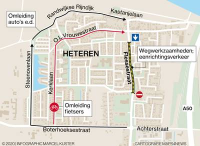 HETEREN - In Heteren wordt komende maand begonnen met de herinrichting van de Flessestraat. De hoofdweg door het dorpscentrum wordt dan tijdelijk een eenrichtingsweg.