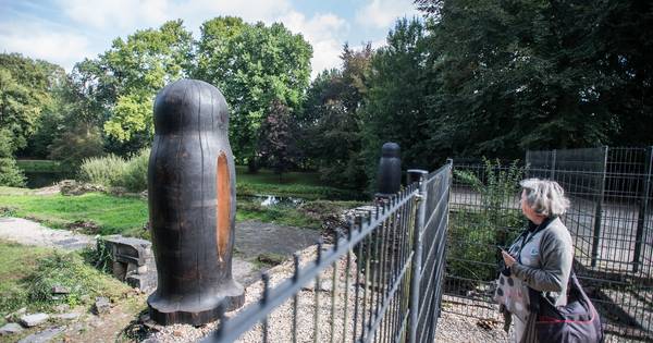 HEMMEN - Wat doen die twee grote, zwarte baboesjkas op de ruïne van Kasteel Hemmen? Circa tweeënhalve meter hoog en ruim 800 kilo zwaar zijn de beelden van de Arnhemse kunstenares Maria Roosen.