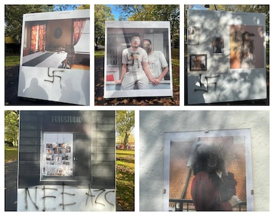 Boosheid en verdriet na de vernieling en bekladding van een van de buitenexposities van lhbti+-project Pride Photo in Breda. Onder meer hakenkruizen en leuzen als ‘nee azc’ werden aangebracht op expositiemateriaal van het project Levenslijnen .