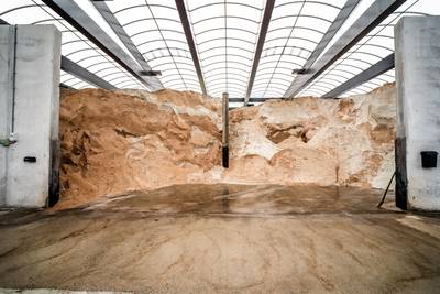 HERVELD - Met een laatste aanvullende levering vanuit Lienden - waar de ‘strategische voorraad’ ligt - heeft Rijkswaterstaat gisteren het strooizoutdepot pal langs de A15-afrit Andelst/Zetten weer volgegooid. ,,Daar ligt nu zo’n 1800 ton”, zegt regionaal coördinator Henrie Derks van de snelwegbeheerder. ,,Per strooironde gaat er 23 ton uit.”