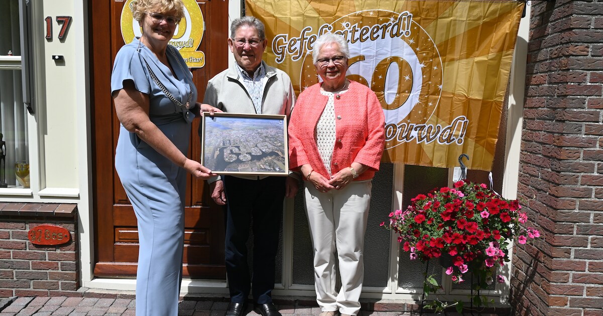 Wethouder Ellen van Klaveren heeft Jan en Ge Bos uit Oude Pekela gefeliciteerd met hun 60-jarig huwelijk. Het stel vierde dit afgelopen zondag met familie en vrienden.