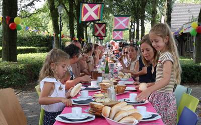 HOOGE MIERDE - Kort na het middaguur doorkruisen zondagmiddag leden van het St. Jorisgilde en zanggroep Nova in een file met schalen broodjes en vleeswaren het Myrthaplein in Hooge Mierde. De derde editie van de Dorpsbrunch trok 135 eters.