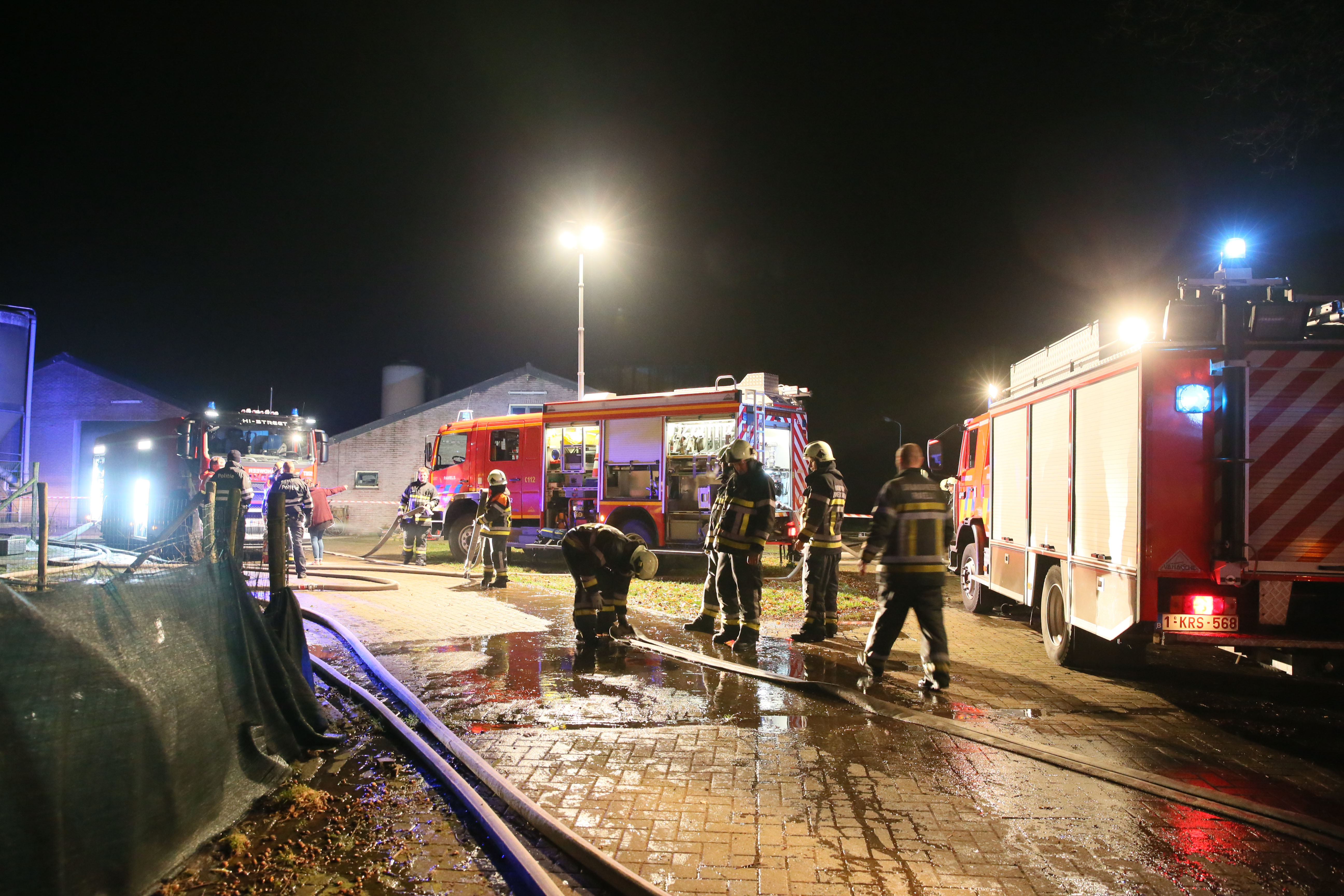 Een uitslaande brand heeft vrijdagavond een stal met 800 kalveren en een bijhorende woning op Hulsel in Poppel (Ravels) zwaar beschadigd.
