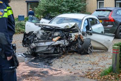 HEERLE - Een auto is zondagochtend tegen een boom gebotst en daarna in een voortuin beland in Heerle. Door nog onbekende oorzaak reed de bestuurder van de Zoomvlietweg af, waarna het ongeluk gebeurde. De voorkant van de auto is volledig kapot door de klap.