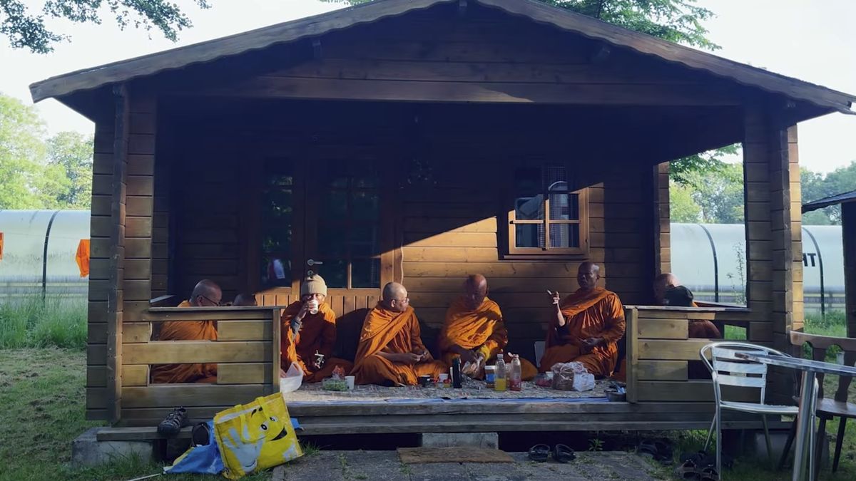 Het is een opmerkelijk gezicht bij de Rotterdamse Markthal: een groep monniken uit Thailand, geheel in oranje gekleed. Nee, ze zijn niet verdwaald. Ze wandelen voor wereldvrede. Na een lange tocht laten ze zich trakteren op lokale culinaire hoogstandjes, zoals een boterham met kaas, een stroopwafel en natuurlijk een echte Rotterdamse kapsalon.