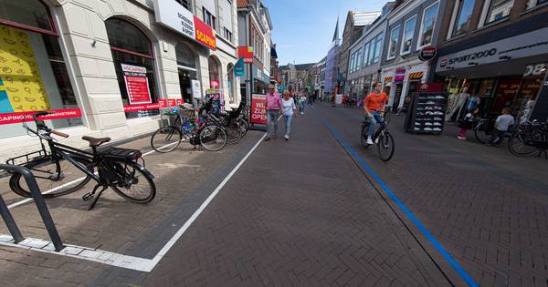 Blauwe lijnen en pijlen helpen sinds vrijdag het winkelend publiek in de Kamper binnenstad afstand van elkaar te houden. Niet iedereen is even blij met die blauwe lijnen door de historische straten: ,,Schrikbarend, waar gaat het met onze mooie binnenstad naar toe?’’, vraagt fotografe Ursula van de Bunte uit Kampen zich af.
