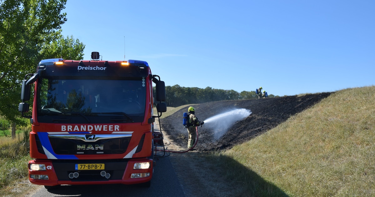 Een stuk dijk van zo’n 60 meter langs de Noorddijk tussen Dreischor en Nieuwerkerk heeft maandagmiddag in brand gestaan. Door de droogte en wind grepen de vlammen snel om zich heen.