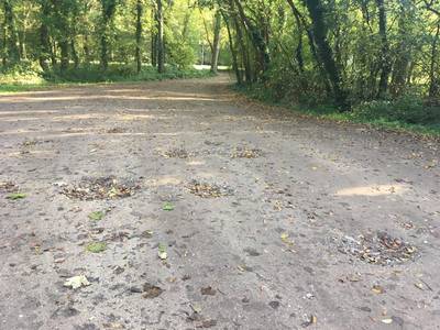 SCHUDDEBEURS - De kuilen op de parkeerplaats aan de Donkereweg bij het bos van Schuddebeurs zijn gigantisch. Geld voor herstel is er niet, klinkt het al jaren. Boukje van Scheers uit Noordgouwe neemt geen genoegen met dat antwoord. ,,Dan moeten we naar geld op zoek."