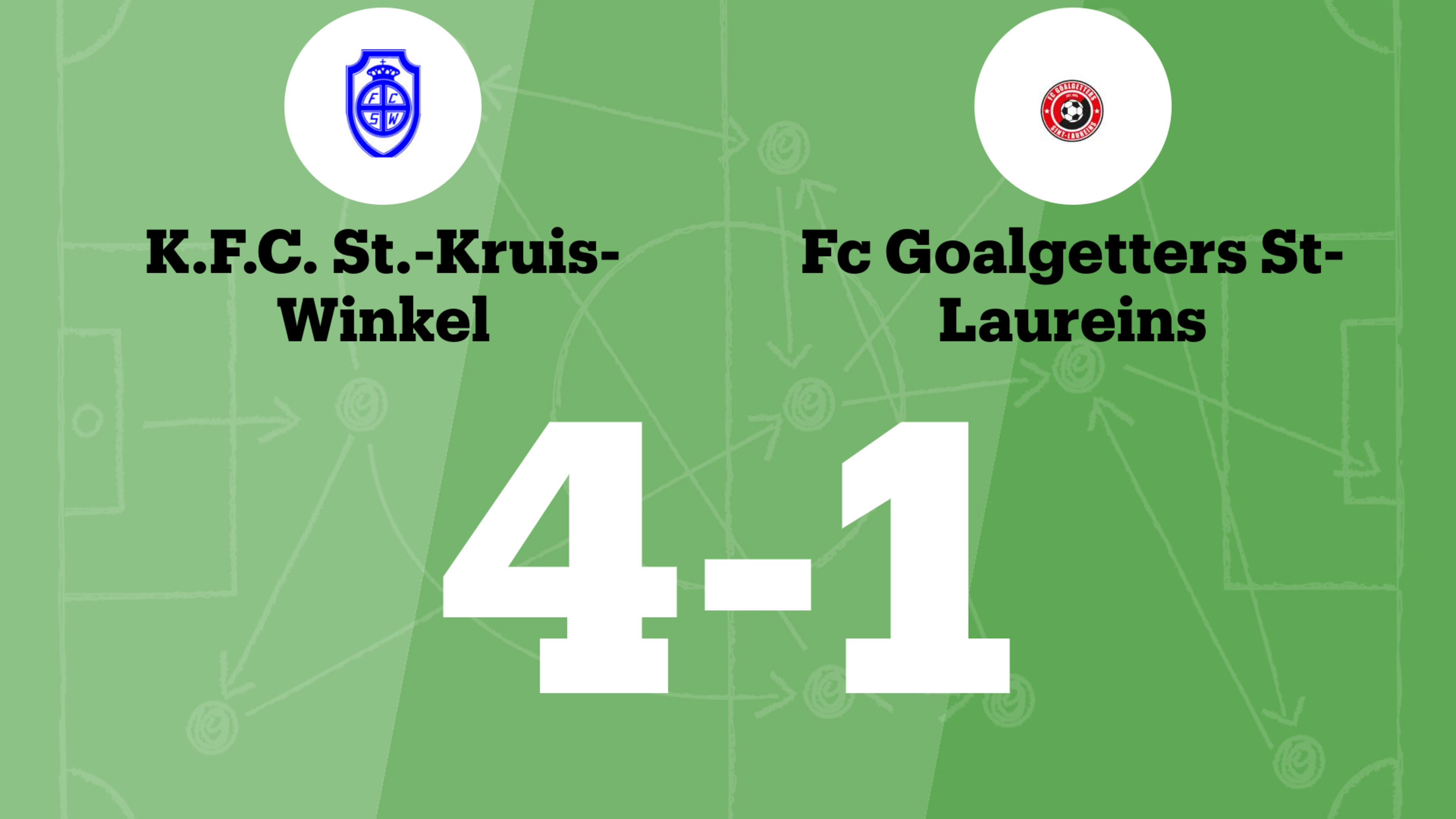 In de 38ste minuut nam KFC St-Kruis-Winkel de leiding via Merhat Emilov Aleksiev. Stephane De Bolster bracht in de 42ste minuut KFC St-Kruis-Winkel op 2-0. Direct na de rust liet Aleksiev zich gelden voor een tweede keer en vergrootte de voorsprong voor KFC St-Kruis-Winkel. Enrico Asman bouwde in de 70ste minuut de marge uit voor KFC St-Kruis-Winkel. Het doelpunt dat de marge verkleinde naar 4-1 voor FCG Sint-Laureins B werd gemaakt door Eddy De Vlaeminck.