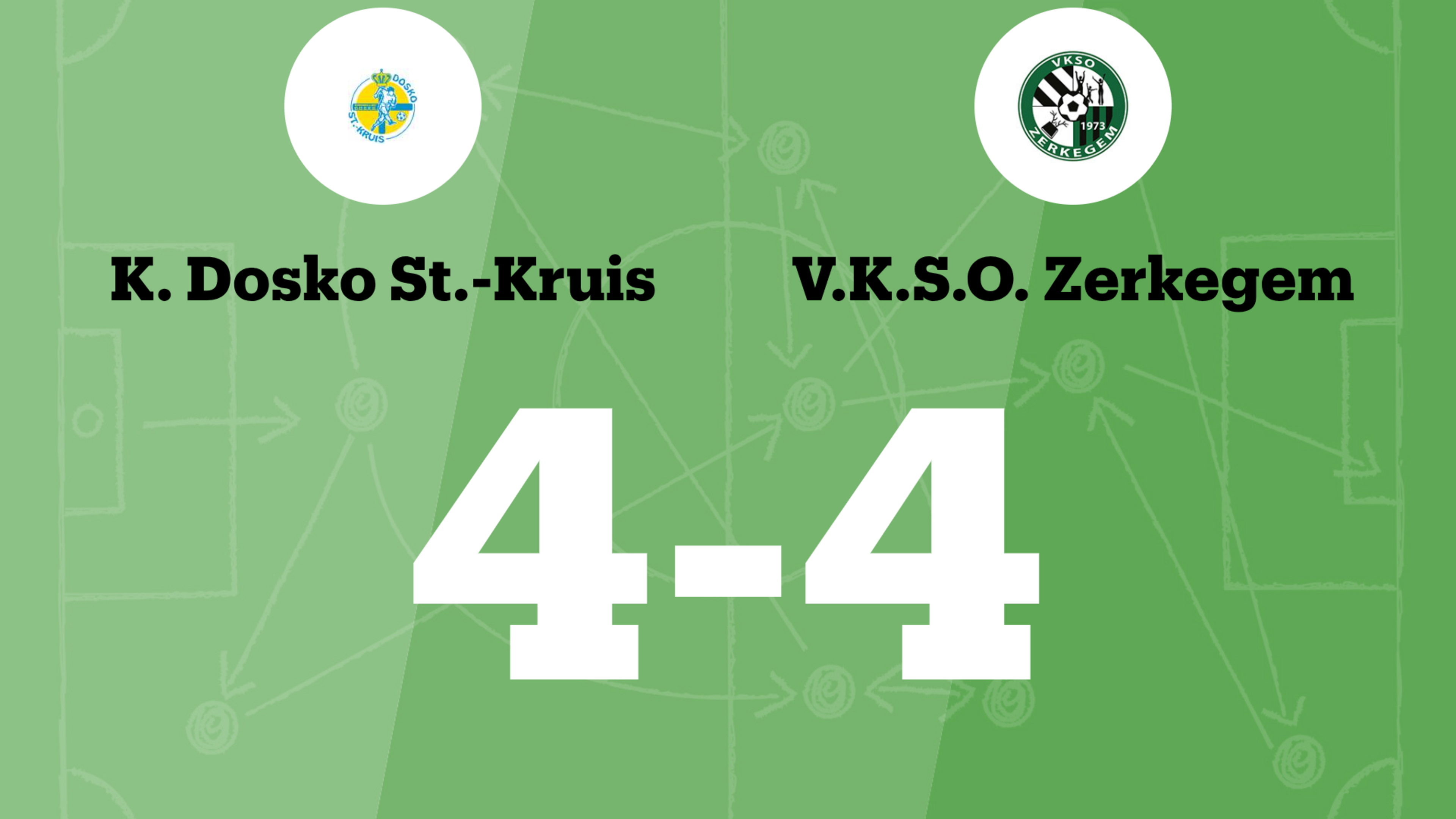 Dosko Sint-Kruis kwam al vroeg op voorsprong na een doelpunt van Lars Lanssens na 9 minuten. VKSO Zerkegem maakte vroeg in de wedstrijd gelijk toen Tibo Gereels scoorde in de 12de minuut. Aaron Simoens bracht in de 23ste minuut de thuisploeg opnieuw op voorsprong. Victor Verheyen bracht in de 43ste minuut Dosko Sint-Kruis op 3-1. Direct na de rust vergrootte Robin Van De Water de voorsprong van Dosko Sint-Kruis. Met nog bijna een half uur te gaan scoorde Jari D’Hoore voor VKSO Zerkegem. VKSO Zerkegem deed de tegenstander nogmaals pijn in de 63ste minuut van de wedstrijd toen Joran Masscho scoorde. Elliott Missault passeerde vier minuten later de doelman en maakte gelijk voor VKSO Zerkegem.