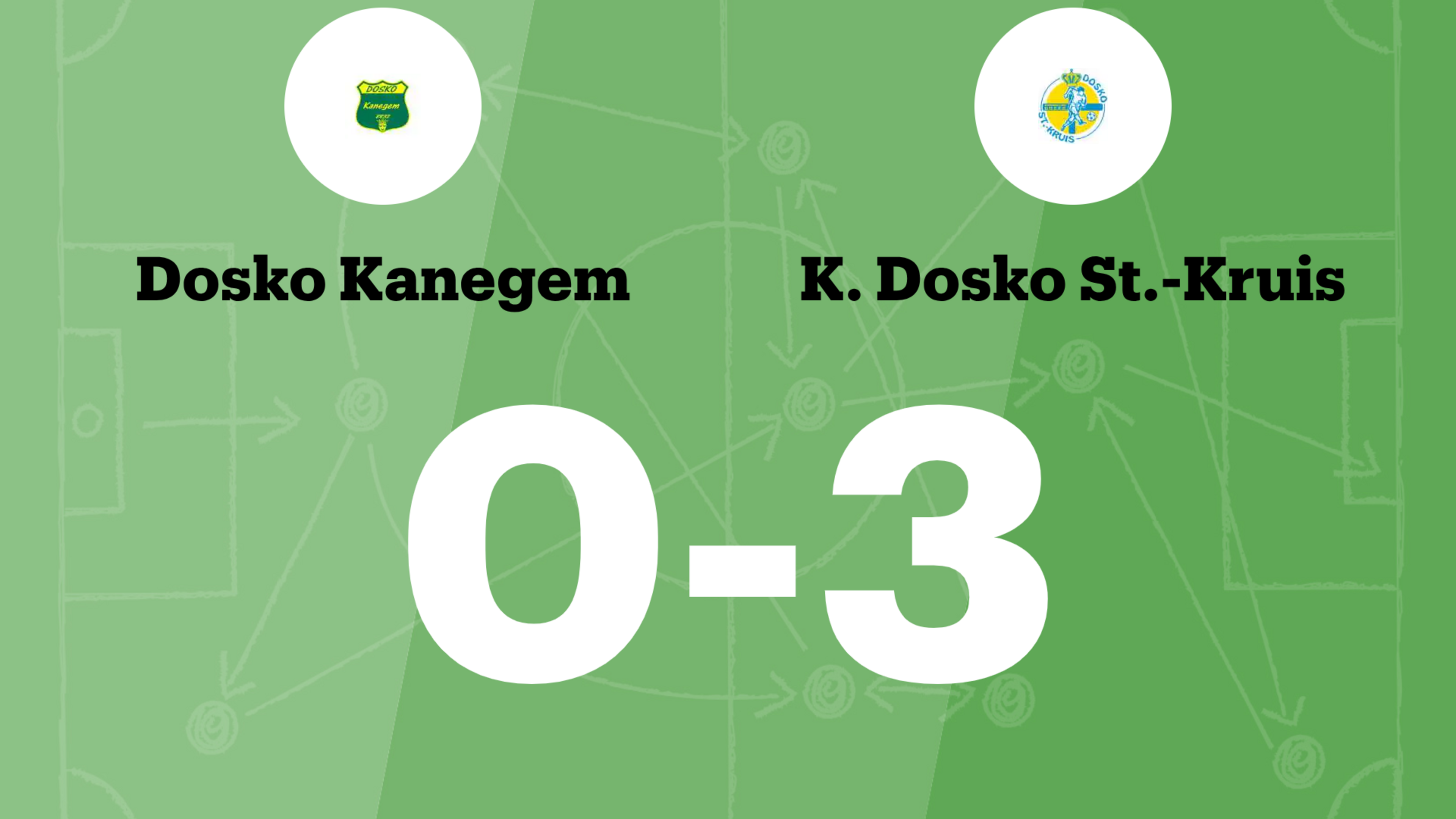 Dosko Sint-Kruis kwam op voorsprong in de 38th minuut via Lars Lanssens. Victor Van Damme vergrootte in de 66th minuut de marge voor Dosko Sint-Kruis. Dosko Sint-Kruis vond het net nog een keer, deze keer via Victor Verheyen in de 81st minuut. Dosko Kanegem heeft al 17 wedstrijden op rij niet gewonnen.
