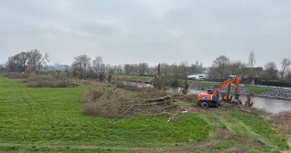 De Vlaamse Waterweg is de wilgen en zwarte elzen aan het snoeien op de linkeroever van de IJzer bij het bedrijventerrein Heernisse in Diksmuide. Dat past binnen het actieplan ‘Weerbare Westhoek’.