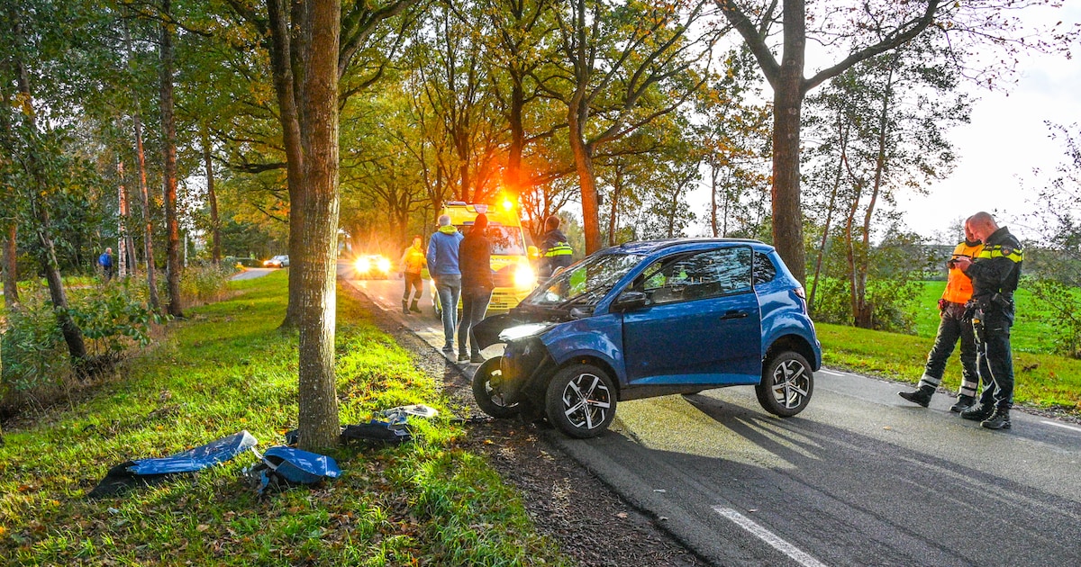 Een brommobiel is dinsdagmiddag van de weg geraakt en frontaal tegen een boom gebotst op de Folgerster Loane in Drachtstercompagnie. De bestuurder raakte gewond en wordt door het ambulancepersoneel verzorgd.