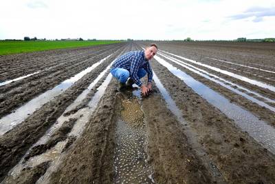 KRUISLAND – Hij had de aardappelen allang gepoot willen hebben. En op zijn perceel uien had-ie al moeten schoffelen. Maar door die vervloekte regenbuien van de laatste tijd komt het er maar niet van. Agrariër Robbert Bogers uit het buitengebied van Kruisland wordt er niet vrolijker van.