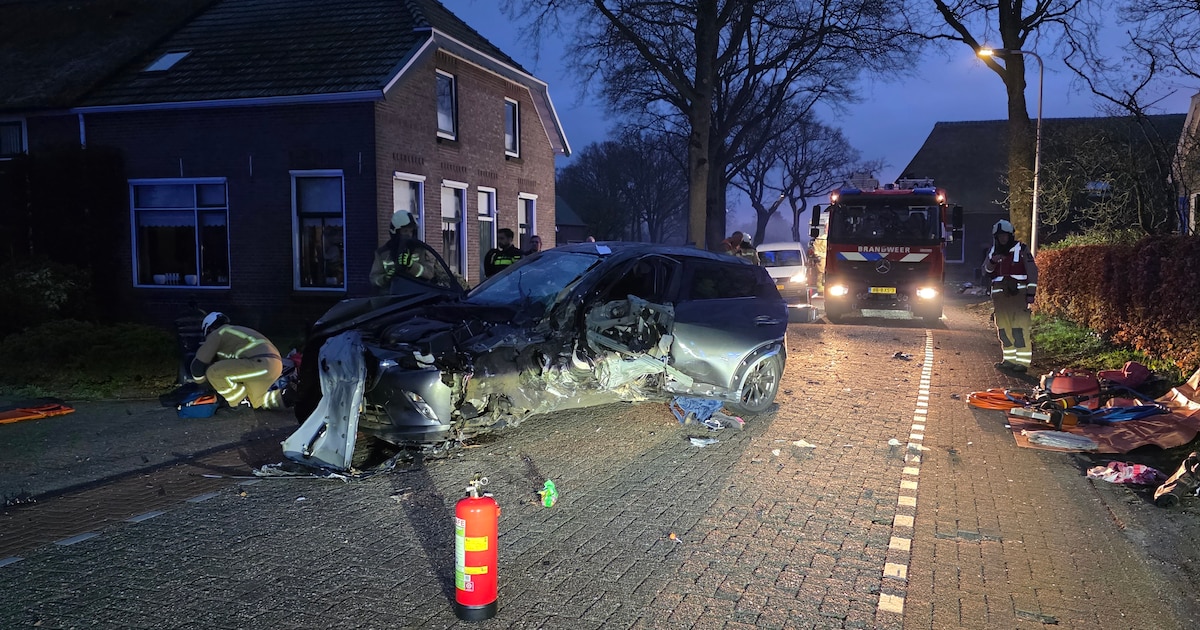 Papier op de weg, omver gereden containers en een beschadigde boom: de ravage is donderdagmorgen groot aan de Veneweg in Wanneperveen. Daar is een auto zwaar beschadigd geraakt bij een ongeval.