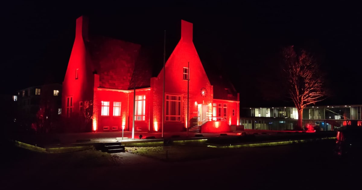 Gemeente Terschelling verlicht het gemeentehuis oranje voor de campagne Orange the World. De actie loopt tot en met woensdag 10 december.