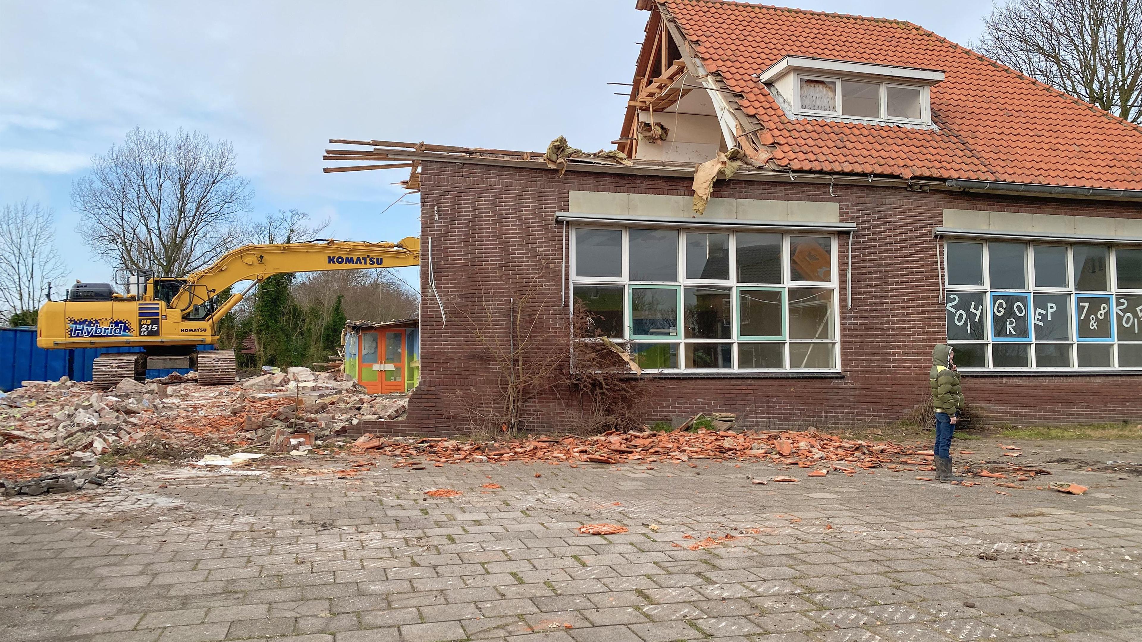 Tien jaar na de sluiting is eindelijk begonnen met de sloop van de voormalige basisschool De Akker in Oosterend.