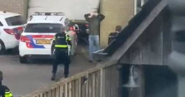 WESTERHAAR-VRIEZENVEENSEWIJK – Met getrokken wapen staan ze voor de loods, de politiemannen van het arrestatieteam dat zaterdagmorgen een loods aan de Sibculoseweg in Westerhaar-Vriezenveensewijk binnenviel. Daar werden vijf personen gearresteerd die worden verdacht van de ramkraak bij een juwelier uit Tubbergen.