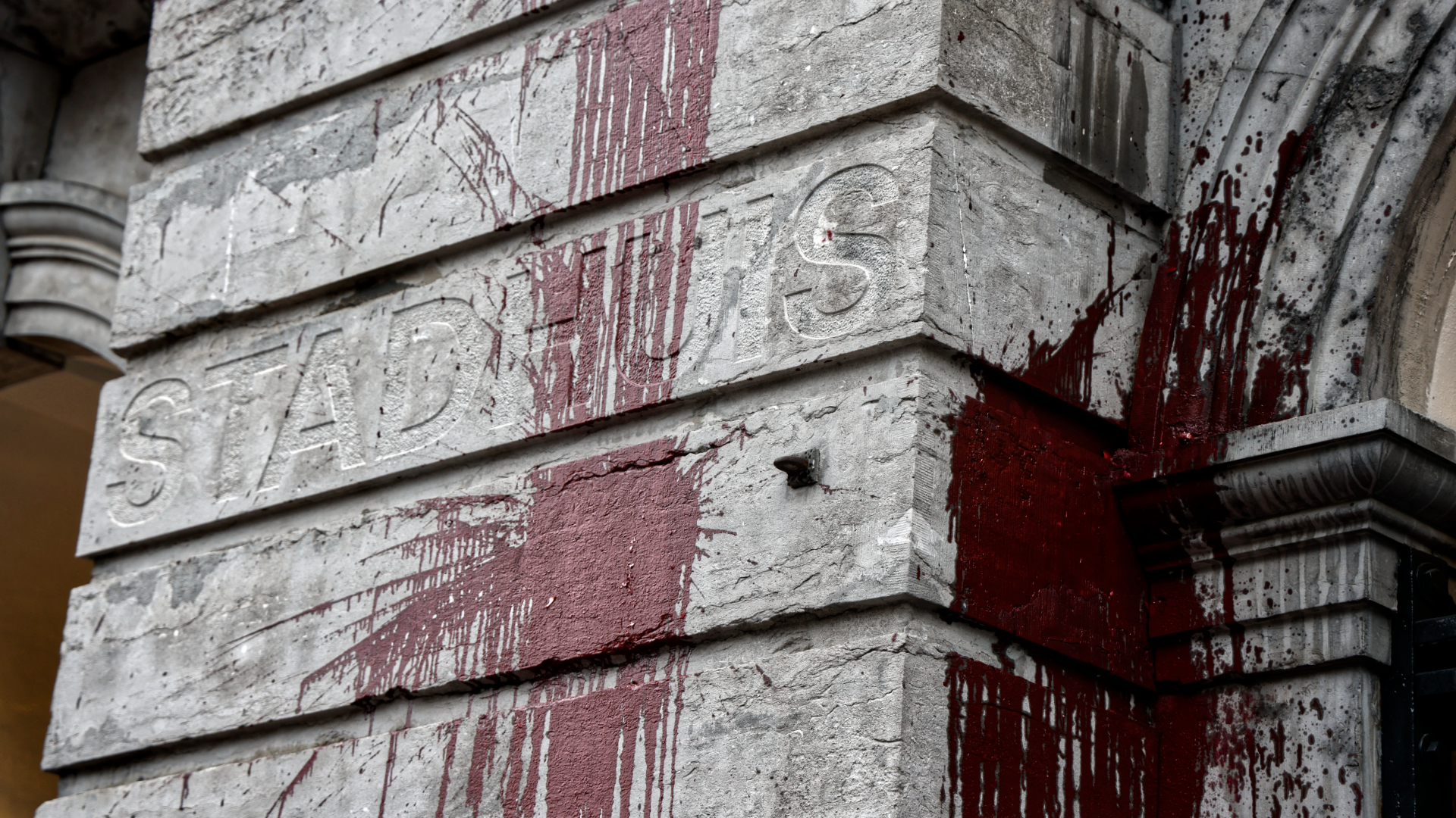 Utrecht - De gemeente Utrecht heeft aangifte gedaan van de bekladding van het stadhuis. Afgelopen vrijdag werd het stadhuis besmeurd met een rode vloeistof. Het schoonmaken blijkt nog een hele klus: schoonmakers die de boel wilden opruimen moesten hun werk stoppen om beschadigingen aan het monumentale gebouw te voorkomen.
