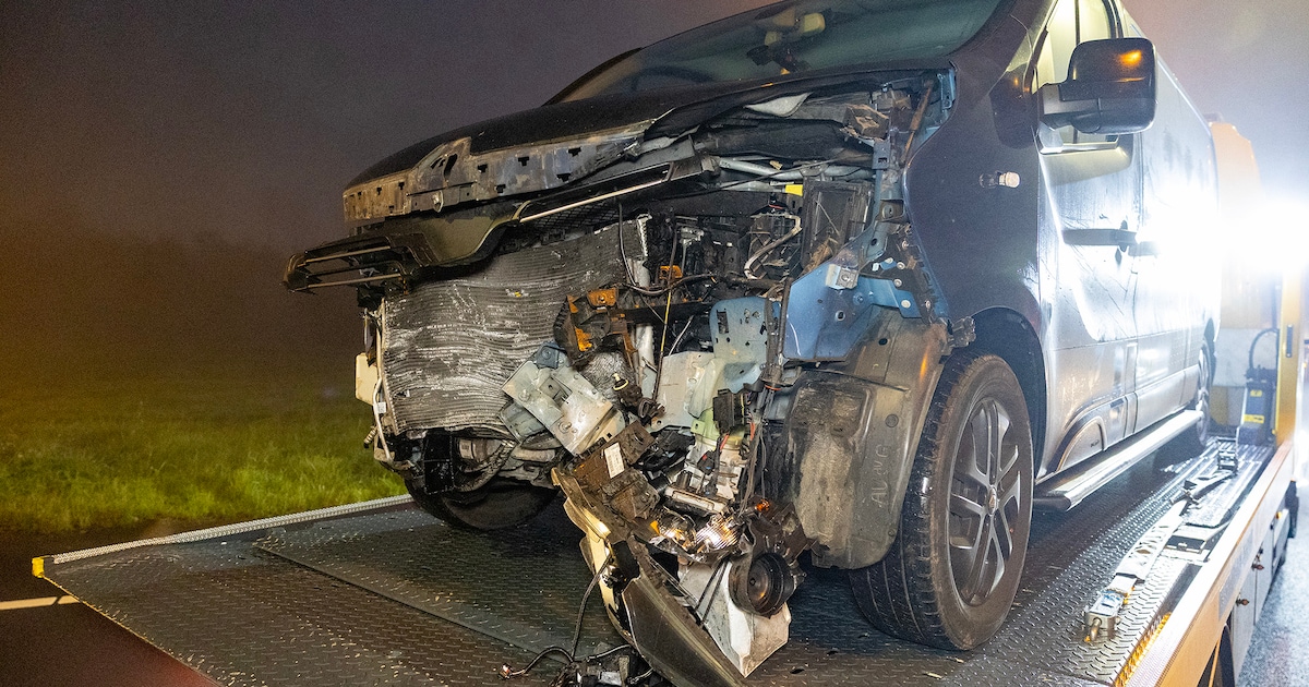 Een bestelbus is woensdagochtend in de vroege uurtjes in botsing gekomen met een auto op de kruising aan de Amsterdamseweg in Velsen-Zuid.