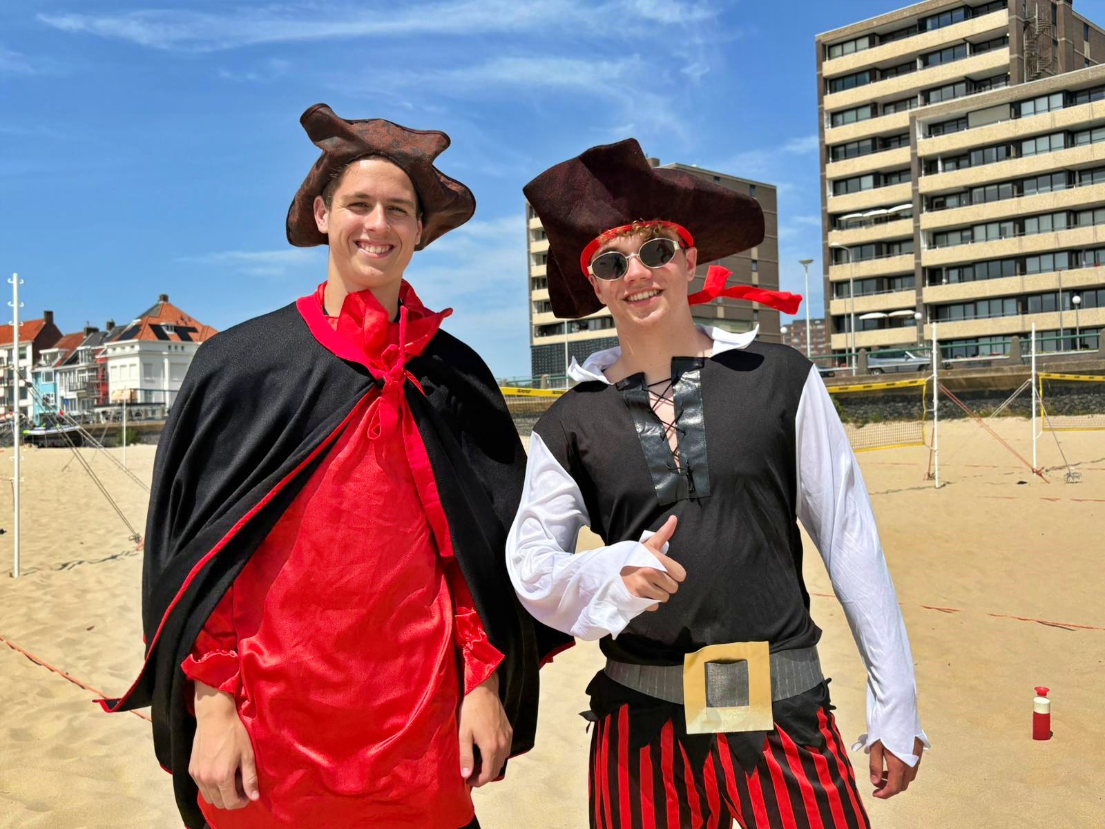 Wie donderdagmiddag op het Badstrand in Vlissingen zat, dacht misschien dat-ie een zonnesteek had opgelopen bij het zien van twee piraten op het strand. Niet is minder waar want Jelte en Xander liepen er echt. Ze waren met een schoolopdracht bezig.