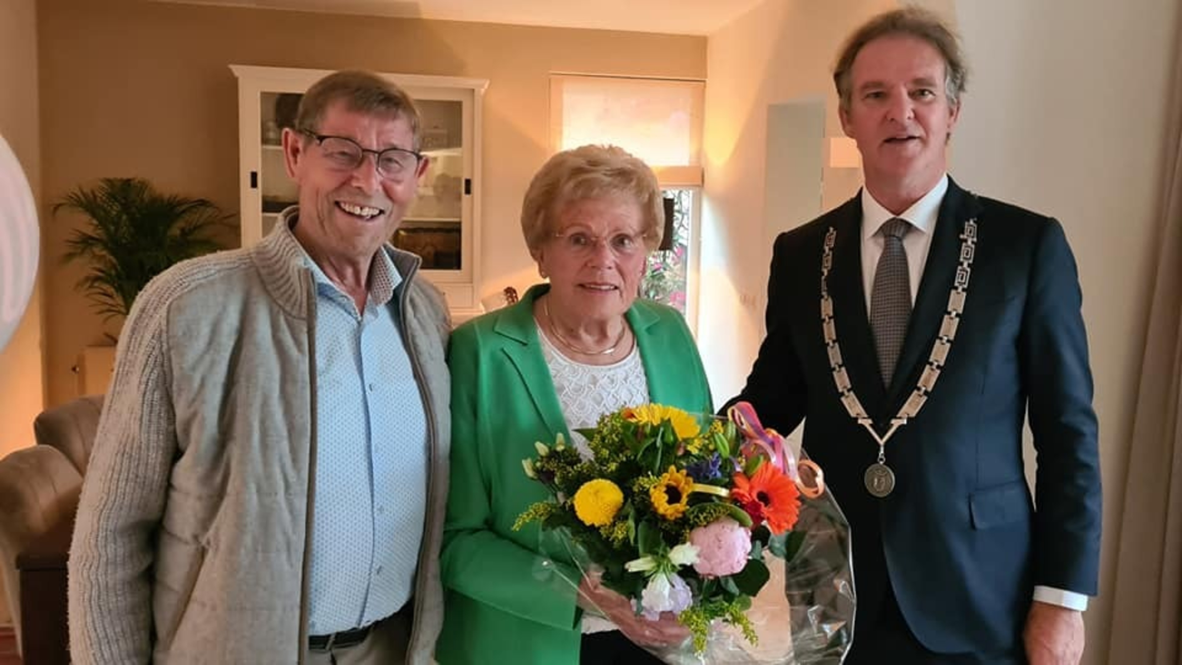 Jeannie en Paul Wiertz uit Ubachsberg waren op 5 juni 60 jaar getrouwd. Een heuglijk feit waar burgemeester Wil Houben uiteraard even bij stil stond; met felicitaties en een bos bloemen