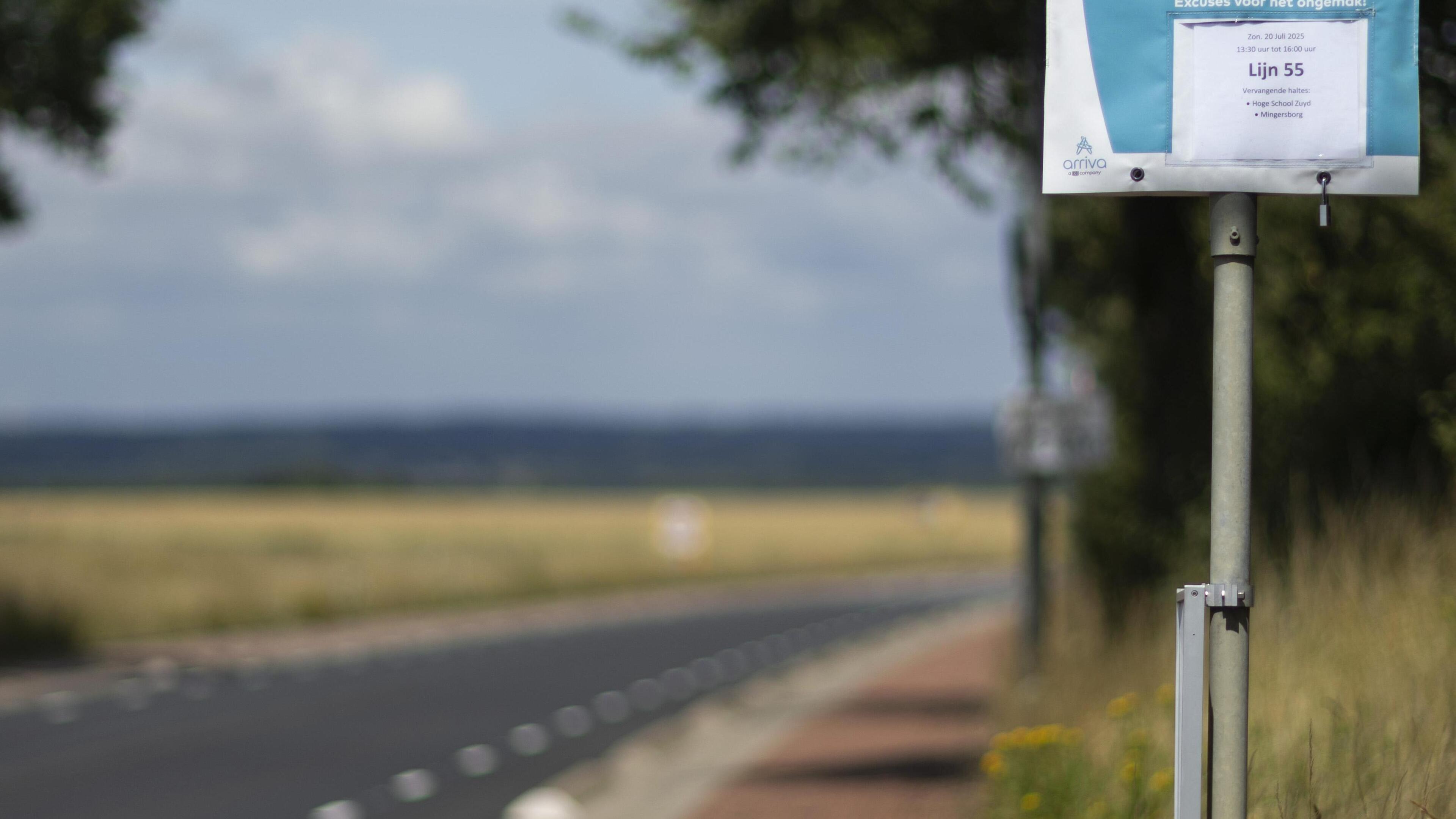 Kinsley Okei (39) uit Nigeria wacht op een bus die niet komt. ‘Halte tijdelijk buiten gebruik’, staat er op het bordje bij de halte naast de crisisnoodopvang aan de Bergseweg in Ubachsberg. Maar hij kan nog niet zo goed Nederlands lezen en dus wacht hij geduldig. Zijn vrolijk gestreepte gewaad steekt fel af tegen de grijze lucht boven hem, die steeds donkerder wordt.