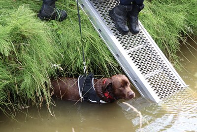 SPRANG-CAPELLE - Een hond beleefde zondagmorgen een wel heel nat avontuur. Op het moment dat die diens behoefte deed, gleed de hond uit en belandde pardoes in de sloot. Het gebeurde aan de Oudestraat in Sprang-Capelle.