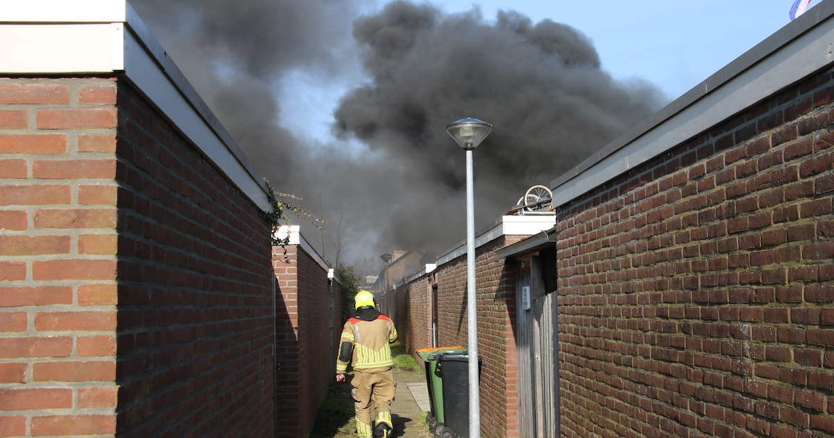 Aan de Mauritslaan in Waddinxveen is woensdagmiddag een felle brand in een schuur uitgebroken. Bij de brand komt veel rook vrij.