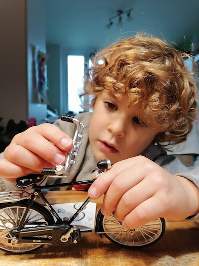 APPELTERN Olivér van vijf knutselt vol concentratie een fietsje in elkaar voor zijn jarige, fietsgekke bonusopa Piet.