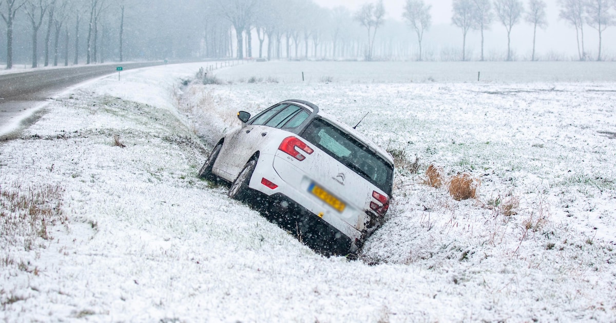 Een auto is woensdagochtend een greppel ingegleden langs de N353 bij Wapserveen. Door de gladheid verloor de automobilist de macht over het stuur en raakte van de weg af.