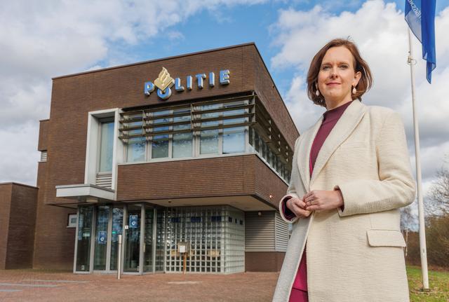 Burgemeester Stieneke van der Graaf van gemeente Weststellingwerf bij het politiebureau van Wolvega. Foto: Rens Hooyenga