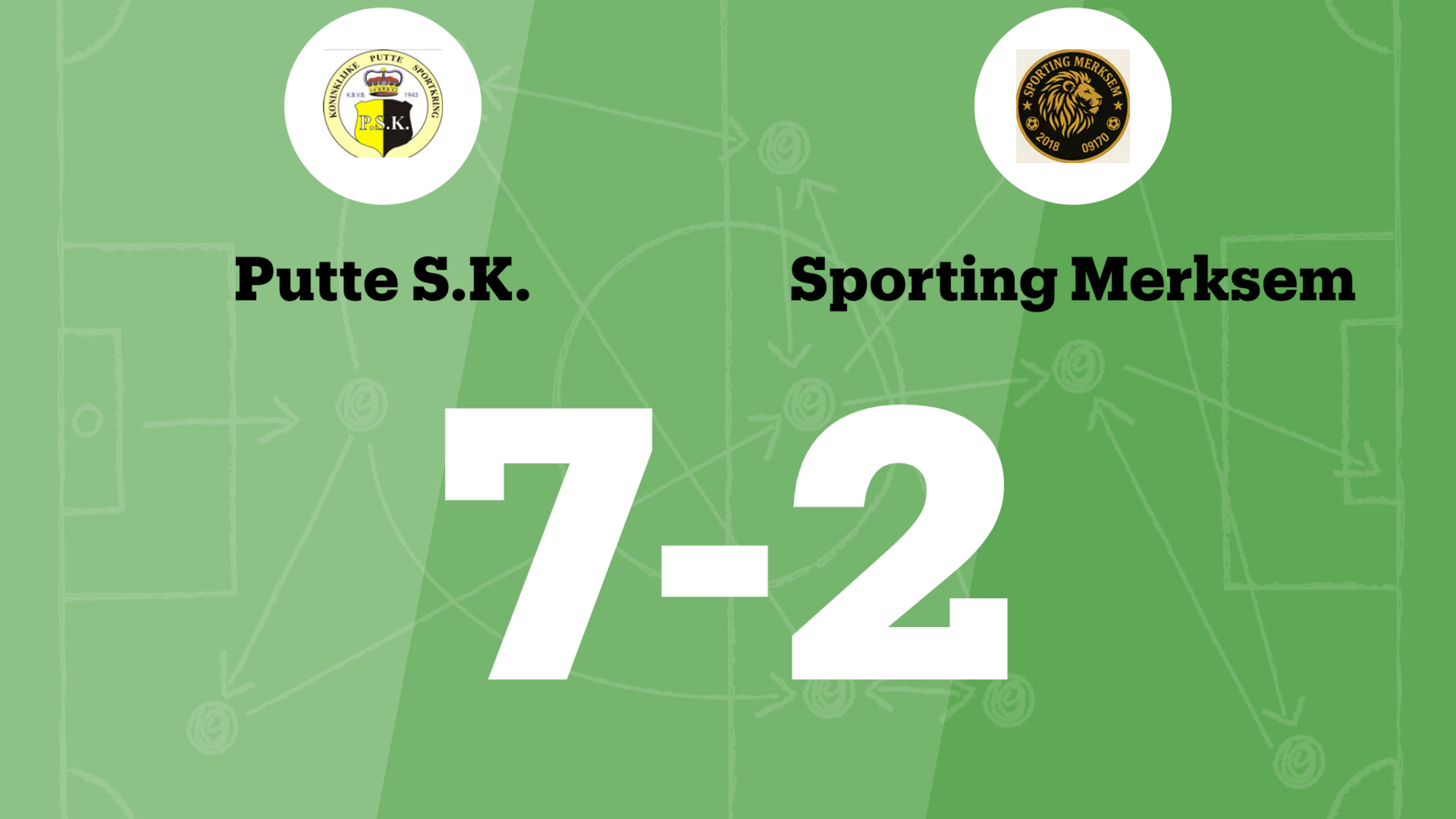 Sporting Merksem B kwam op voorsprong in de 27ste minuut via Jawad Taouil. Perez Ampofo maakte gelijk na meer dan een half uur. Drie minuten later passeerde Osayemwere Scott Ighodaro de doelman en kwam Putte SK op voorsprong. Putte SK voerde de voorsprong op naar 3-1 net voor het rustsignaal toen Andy Luijckx scoorde. Direct na de rust scoorde Ighodaro voor een tweede keer en vergrootte de voorsprong voor Putte SK. Glenn Gillis vergrootte in de 51ste minuut de marge voor Putte SK. Gillis scoorde nog een keer in de 69ste minuut. Mohamed Harrabi verkleinde de achterstand van Sporting Merksem B in de 77ste minuut. Maar Sporting Merksem B was niet in staat om terug te komen in de wedstrijd. Taouil (Sporting Merksem B) pakte een gele kaart in de 78ste minuut. Zeven minuten later vergrootte Putte SK de marge. Ighodaro passeerde nog een keer de doelman en maakte hiermee zijn hattrick rond. Sporting Merksem B heeft nu 21 wedstrijden na elkaar verloren.