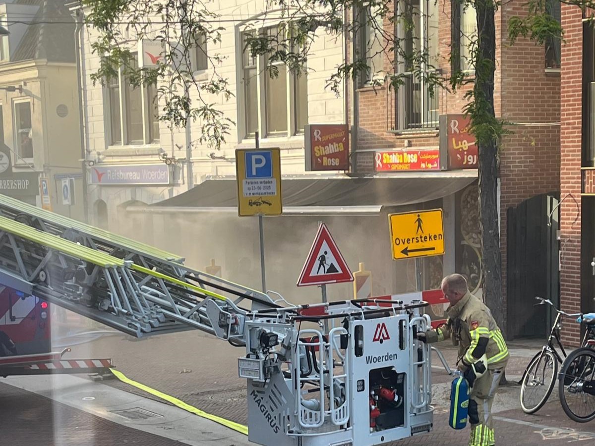 Maandagavond 23 juni brak er brand uit in de binnenstad van Woerden. Foto: biz woerden
