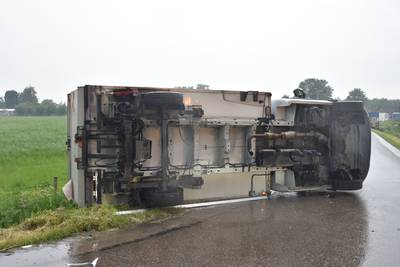 BRUCHEM - De chauffeur van een bakwagen is vrijdagmiddag gewond geraakt bij een botsing met een ander voertuig. Hij is hierna naar het ziekenhuis gebracht. Het ongeval gebeurde op de kruising van de Nieuwstraat en de viaducten in Bruchem. Door de botsing belandde de bakwagen op zijn zijkant.