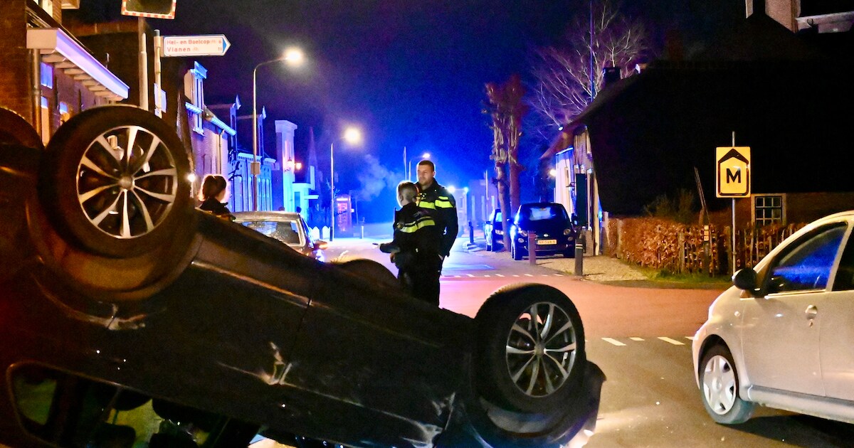 Aan de Recht van ter Leede in Leerbroek is woensdagavond veel schade ontstaan nadat een automobilist twee geparkeerde auto's raakte en over de kop sloeg. Door het ambulancepersoneel is een persoon behandeld.