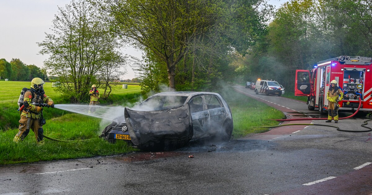 Een auto is donderdagavond volledig in vlammen opgegaan op de Kloosterweg in Marum. De bestuurder raakte lichtgewond en is door ambulancepersoneel ter plekke verzorgd.
