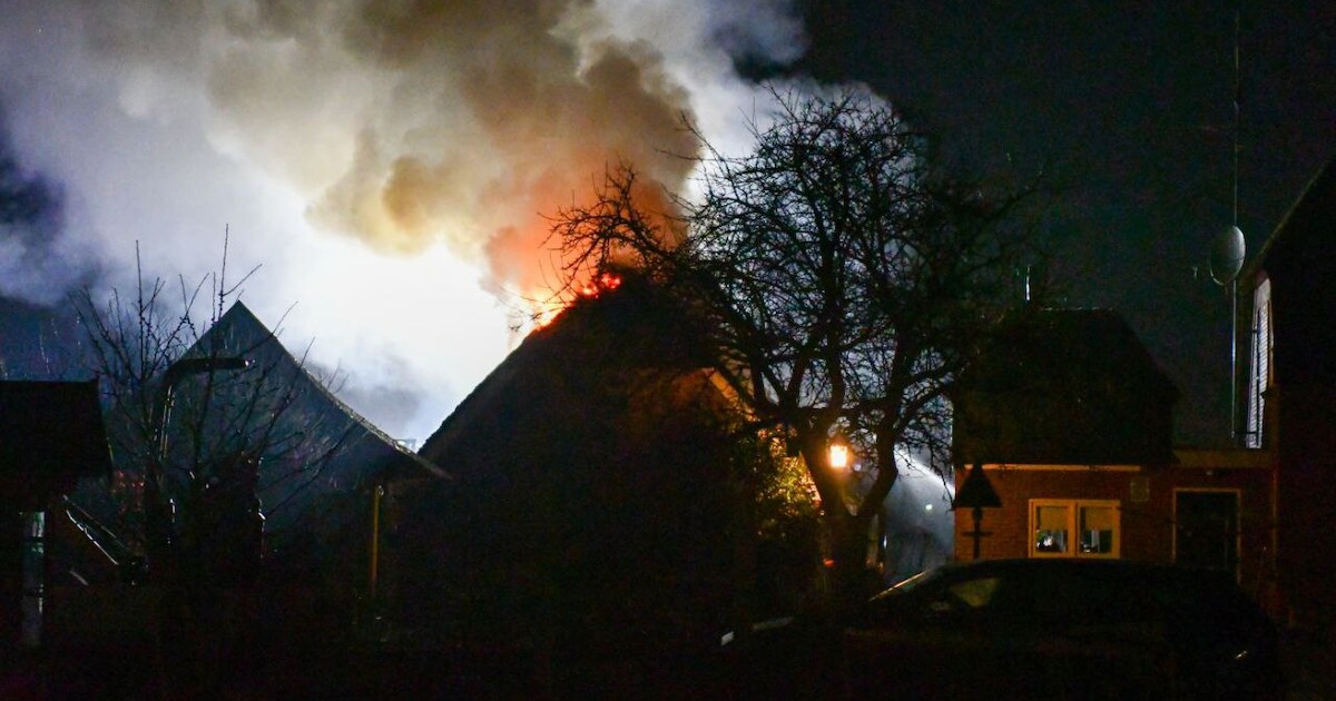 Een schuur aan de Bisschopsweg in Den Ham is in de nacht van vrijdag op zaterdag zwaar beschadigd geraakt door een brand. De brandweer rukte rond 01:30 uur met meerdere eenheden uit en trof de schuur, die een rieten dak had, deels in lichterlaaie aan.