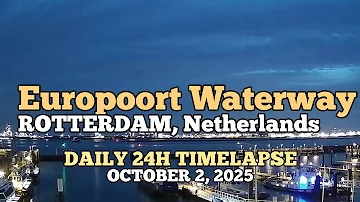 24-hour timelapse featuring the Europoort Canal in the Port of Rotterdam, Netherlands Recorded: October 2, 2025 05:44 ...