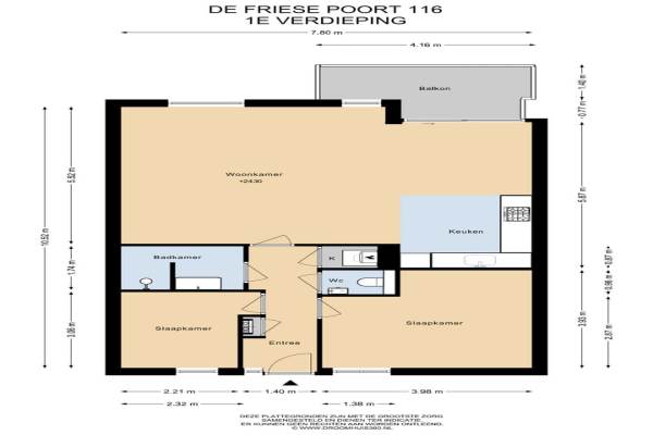Het adres van deze woning uit 1990 is De Friese Poort 116 te Alkmaar. Het pand heeft een oppervlakte van 80m² en heeft 3 kamers kamers waarvan 2 slaapkamers. De geschatte waarde van deze woning is € 385.000.