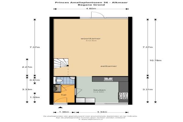Het adres van deze woning is Prinses Amaliaplantsoen 36 te Alkmaar. Het pand heeft een oppervlakte van 114m² en een perceeloppervlakte van 104m² en heeft 4 kamers kamers waarvan 3 slaapkamers. De geschatte waarde van deze woning is € 299.000.