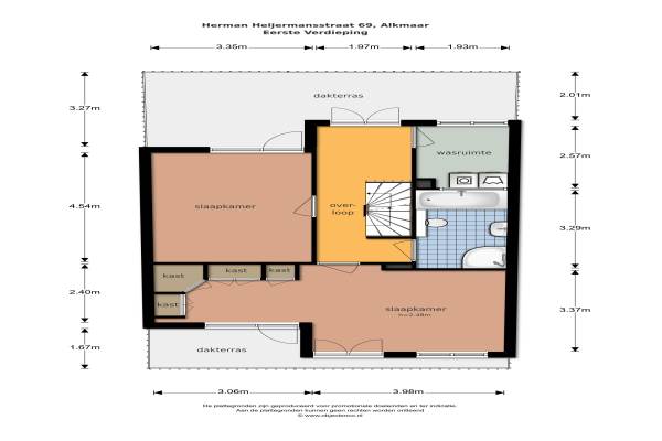 Het adres van deze woning uit 2003 is Herman Heijermansstraat 69 te Alkmaar. Het pand heeft een oppervlakte van 166m² en een perceeloppervlakte van 184m² en heeft 5 kamers kamers waarvan 4 slaapkamers. De geschatte waarde van deze woning is € 399.000.