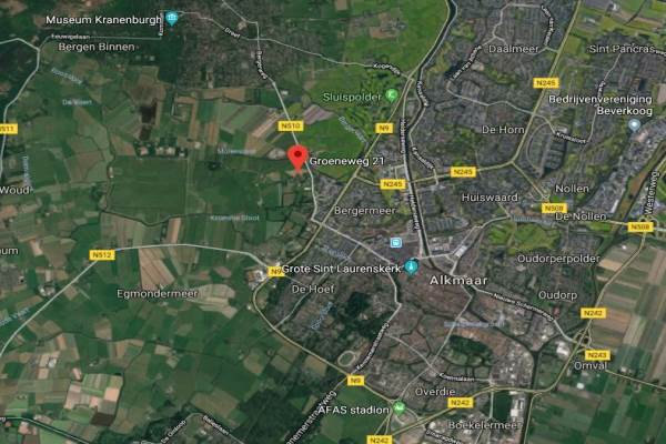 Het adres van deze woning uit 1935 is Groeneweg 21 te Alkmaar. Het pand heeft een oppervlakte van 87m² en een perceeloppervlakte van 31010m² en heeft 4 kamers kamers waarvan 3 slaapkamers. De geschatte waarde van deze woning is € 1.250.000.