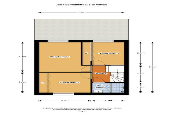 Het adres van deze woning uit 1963 is Jan Voermanstraat 5 te Almelo. Het pand heeft een oppervlakte van 88m² en een perceeloppervlakte van 125m² en heeft 6 kamers kamers waarvan 3 slaapkamers. De geschatte waarde van deze woning is € 125.000.