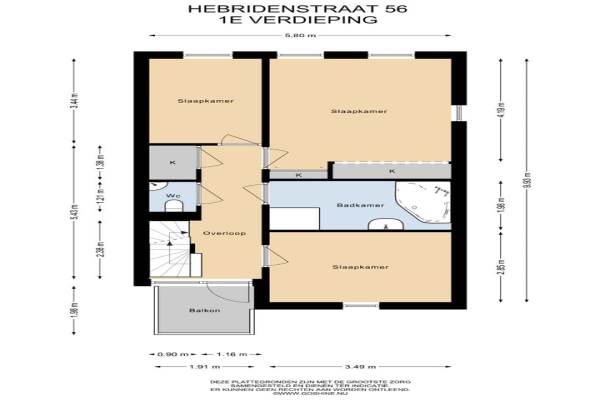 Het adres van deze woning uit 2003 is Hebridenstraat 56 te Almere. Het pand heeft een oppervlakte van 132m² en een perceeloppervlakte van 231m² en heeft 7 kamers kamers waarvan 4 slaapkamers. De geschatte waarde van deze woning is € 600.000.