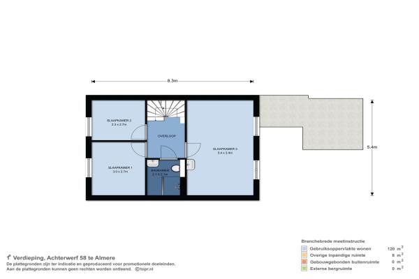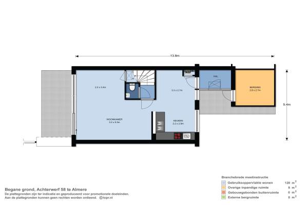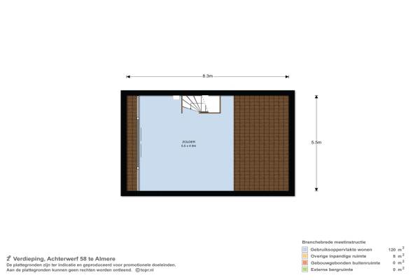 Het adres van deze woning is Achterwerf 58 te Almere. Het pand heeft een oppervlakte van 120m² en een perceeloppervlakte van 135m² en heeft 4 kamers kamers waarvan 3 slaapkamers. De geschatte waarde van deze woning is € 200.000.