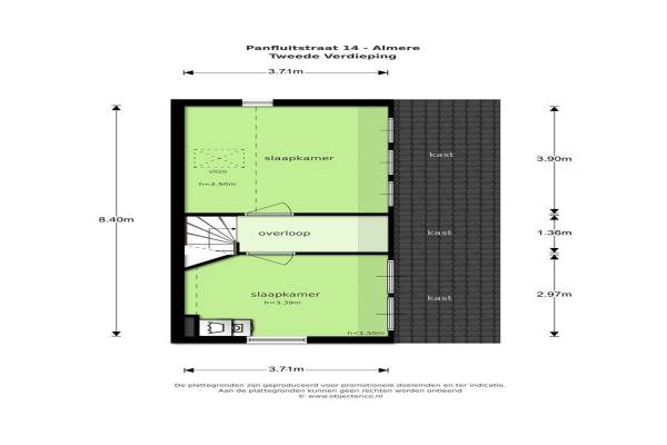Het adres van deze woning uit 1991 is Panfluitstraat 14 te Almere. Het pand heeft een oppervlakte van 130m² en een perceeloppervlakte van 138m² en heeft 6 kamers kamers waarvan 5 slaapkamers. De geschatte waarde van deze woning is € 250.000.